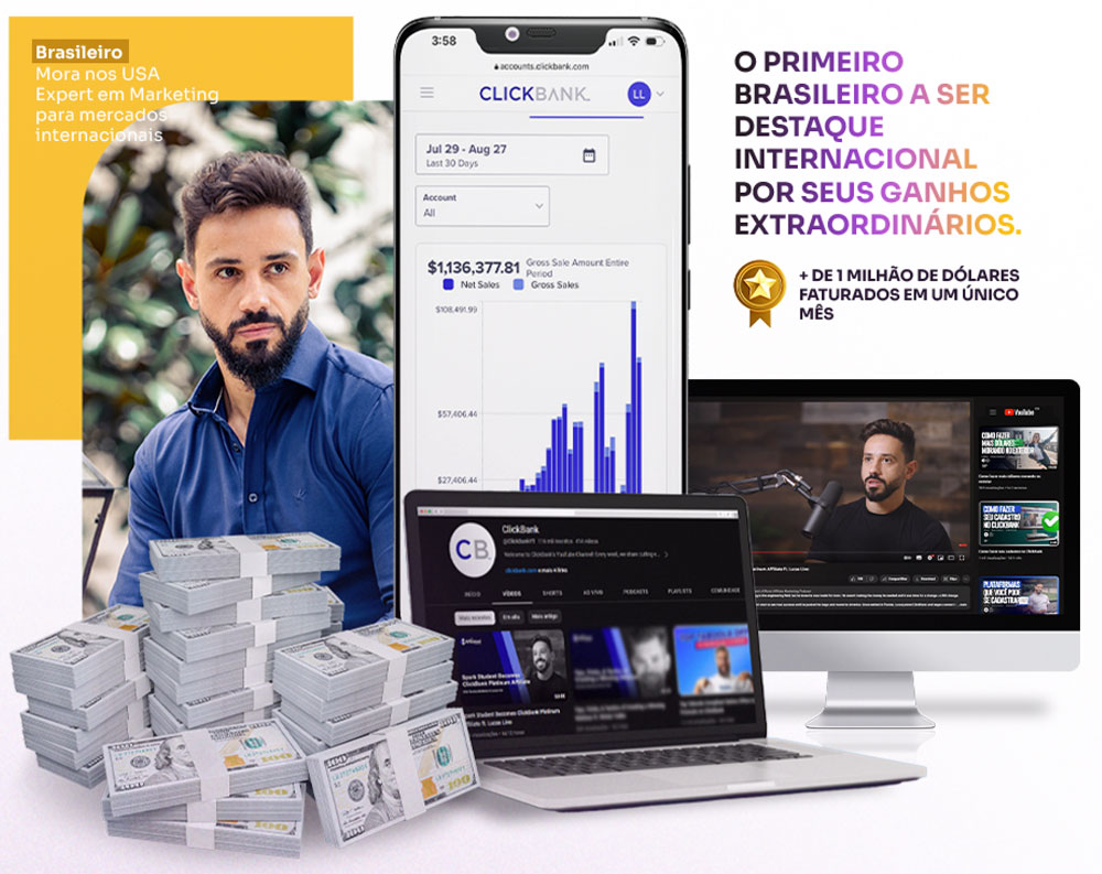 Este foi o mesmo método que eu utilizei para faturar mais de US$ 1,773,703.00 dólares e ser o primeiro brasileiro no mundo a ser entrevistado e reconhecido mundialmente pelos meus resultados no ClickBank